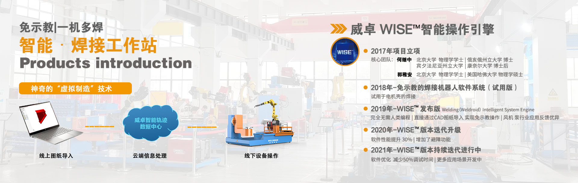 無錫威卓智能機(jī)器人有限公司成立于2017年,是無錫市政府引進(jìn)的科技領(lǐng)軍型高新技術(shù)企業(yè),公司研發(fā)團(tuán)隊(duì)80余人,我們堅(jiān)持自主創(chuàng)新,利用自主開發(fā)的虛擬制造技術(shù)對(duì)傳統(tǒng)焊接行業(yè)進(jìn)行升級(jí)改造。 公司主推的工業(yè)風(fēng)機(jī)系列-智能焊接工作站產(chǎn)品,具有免示教、實(shí)時(shí)跟蹤、簡(jiǎn)易工裝、傻瓜式操作等優(yōu)點(diǎn),真正幫助企業(yè)解決了招焊工難,用工成本高,焊接質(zhì)量不穩(wěn)定等問題。